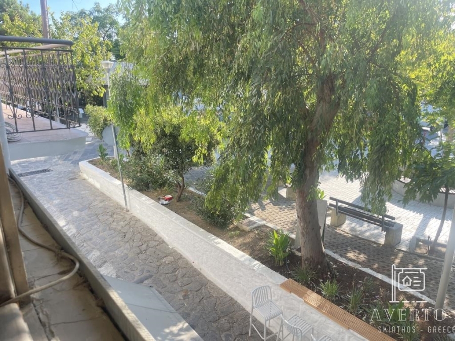 Γωνιακή πρόσοψη ακριβώς απέναντι από την πλατεία, σε ήσυχη αλλά κεντρική γειτονιά