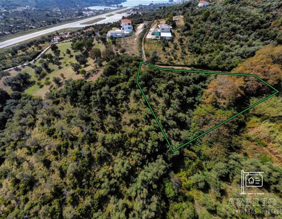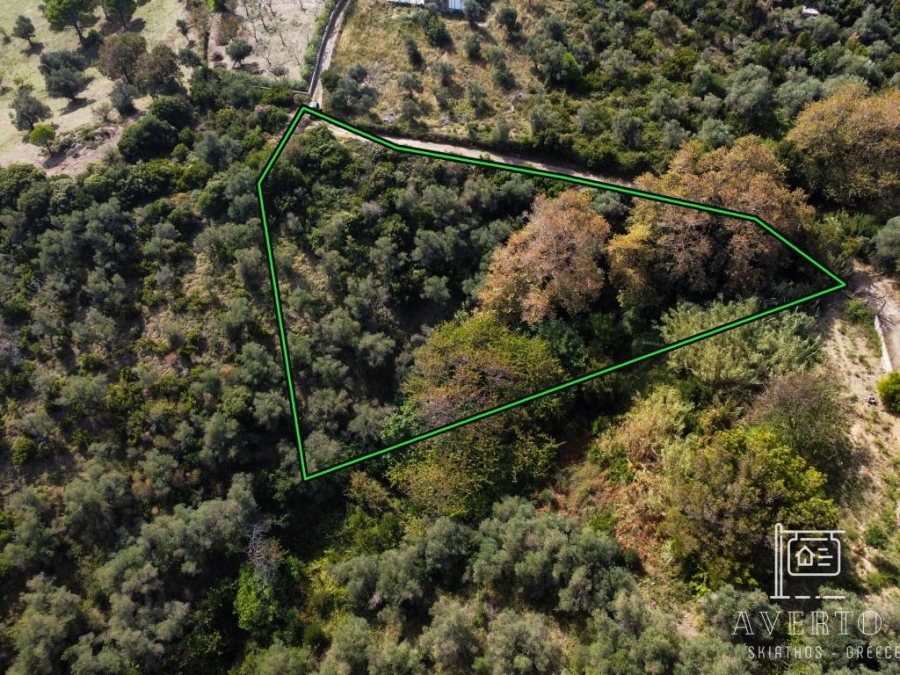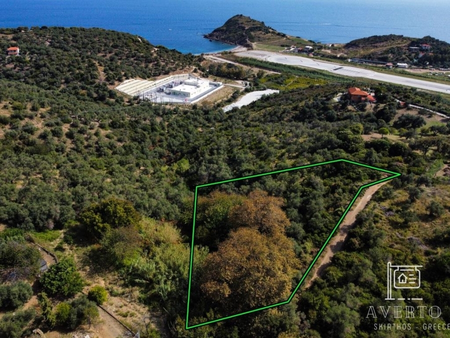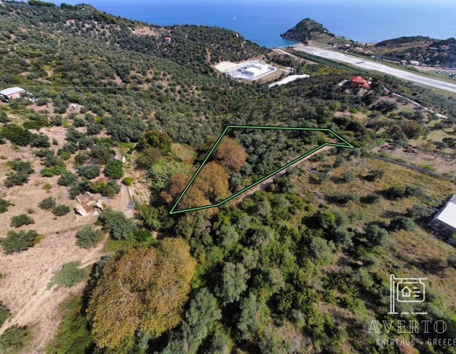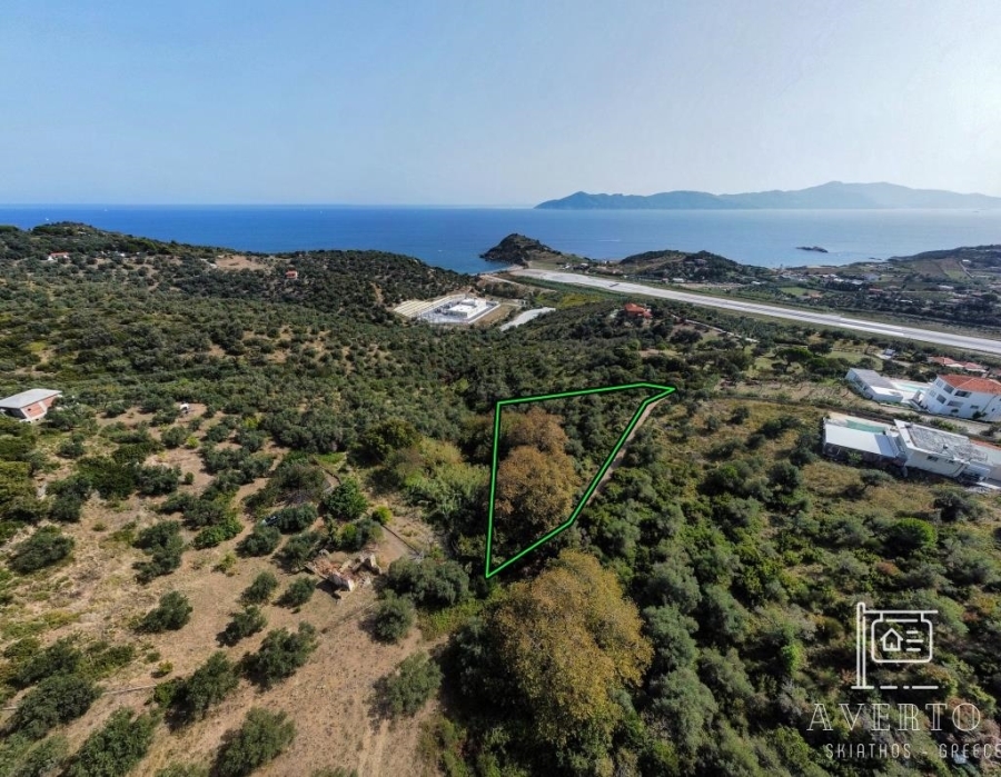Sporades-Skiathos, Kalivia, Agricultural Land For Sale, Out of City plans, 2.047 sq.m., Frontage (m): 76, Depth (m): 48, View: Sea view, Features: Roadside, On Corner, Flat, Suitable for agricultural use, Agricultural area, Distance from: Airport (m): 1500, Seaside (m): 580, City (m): 3000, Price: 25.000€. Averto