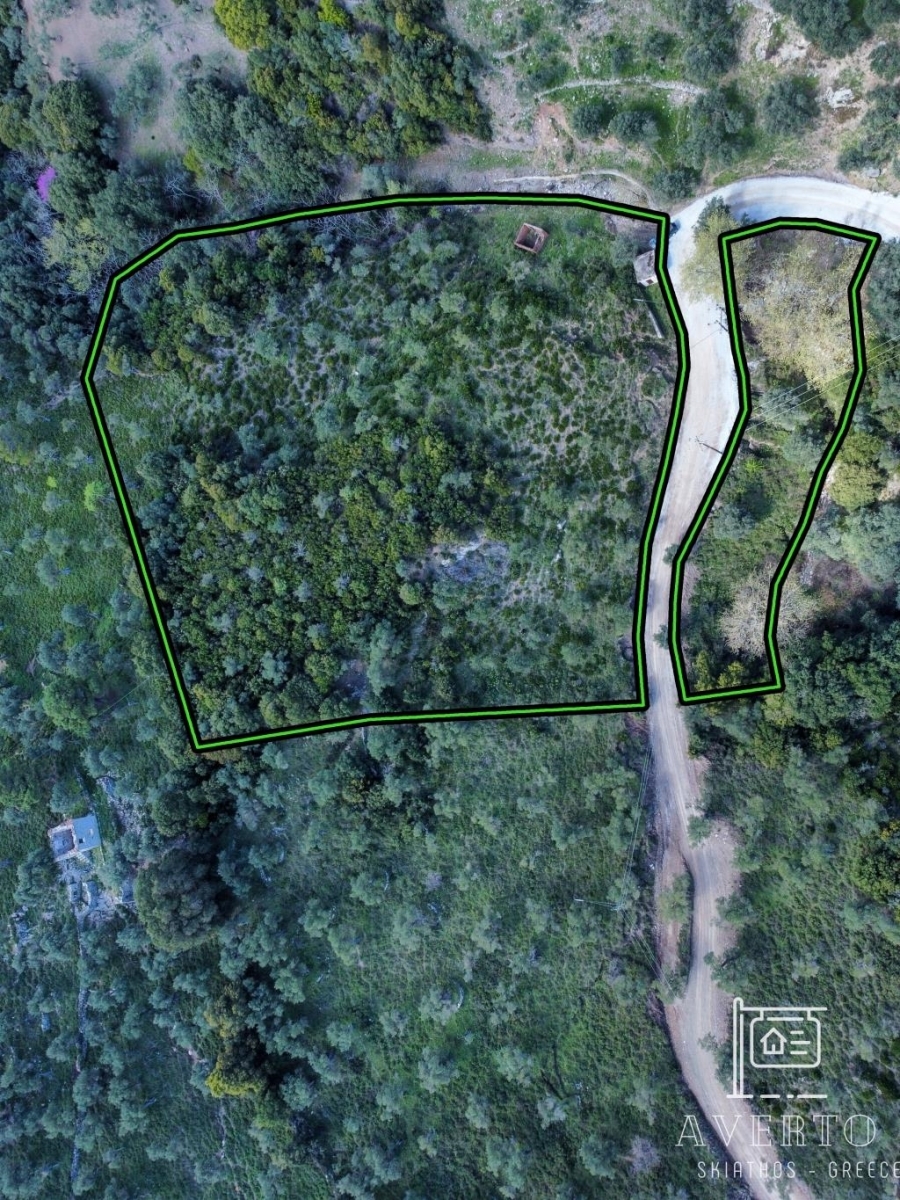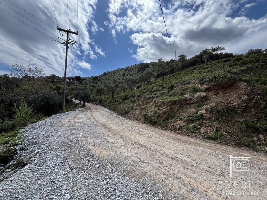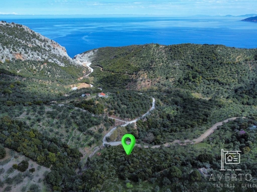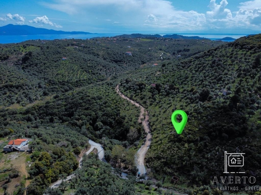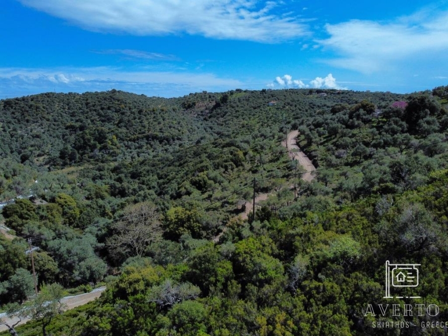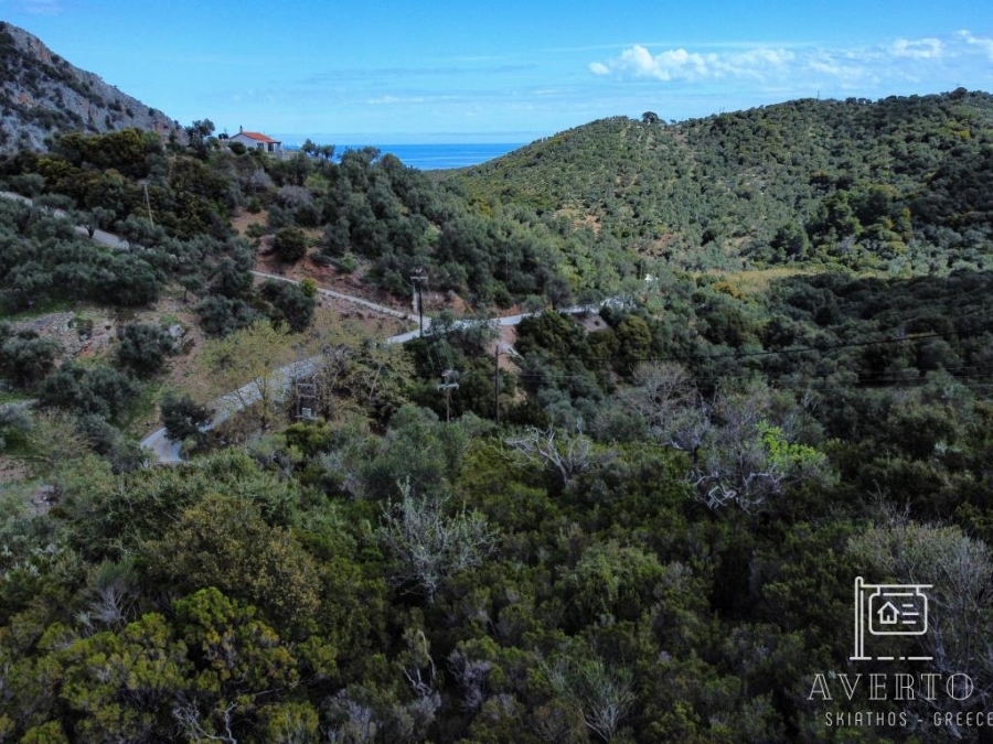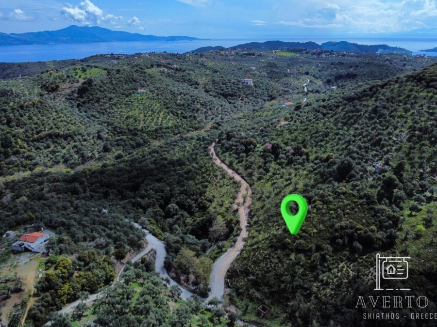 Sporades-Skiathos, Agricultural Land For Sale, Out of City plans, 8.956 sq.m., Frontage (m): 72, Depth (m): 100, View: Mountain View, Features: For Investment, Roadside, Sloping, For tourist use, Suitable for agricultural use, Distance from: Airport (m): 4200, Seaside (m): 800, City (m): 4000, Price: 150.000€. Averto